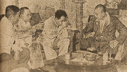 Duran and Ramoz with Yamashita Tribune: "Three patriots lead New Movement to defend freedom." The Kalibapi having died due to Aquino's sudden pangs of materialistic conscience, the "Makapili" [League of Patriots] is being organized "to defend the Republic." The picture of Pio Duran, General Artemio Ricarte and Benigno Ramoz had all of Manila laughing. It's like having Ben Blue, Savvo and Zazu Pitts playing in "The Rosary." Without a radio I've no news. A friend told me that I'd begin to enter a period of deep mental depression within eight days without it. I'm sure he's right, but tonight I feel relieved — it's one worry less if we have to vacate suddenly. The moaning will come later, but so will new bombings to ease the pain. Yes, I've let my sweet radio go, that's why I'm feelin' low.... ...ooOoo... |
